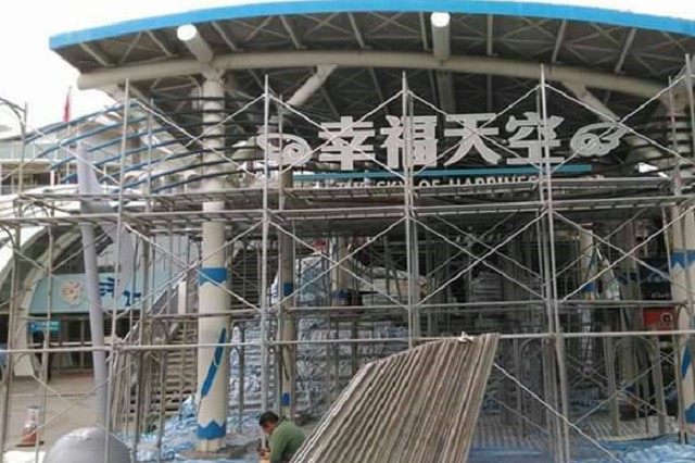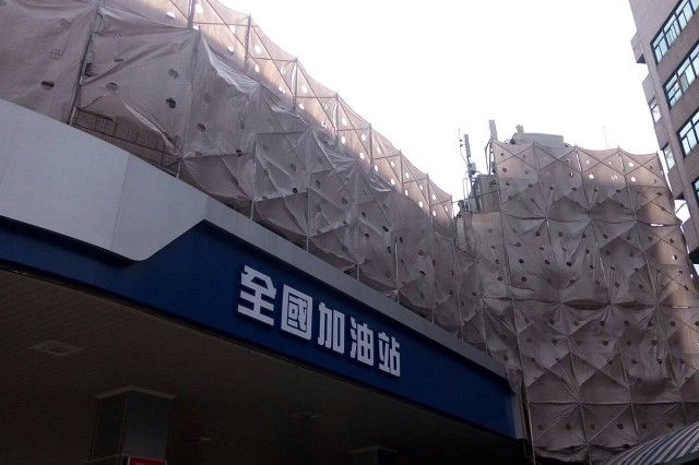 利用萬向活扣將鋼管組合而成之施工架,可塑性高,已逐漸取代傳統竹架。